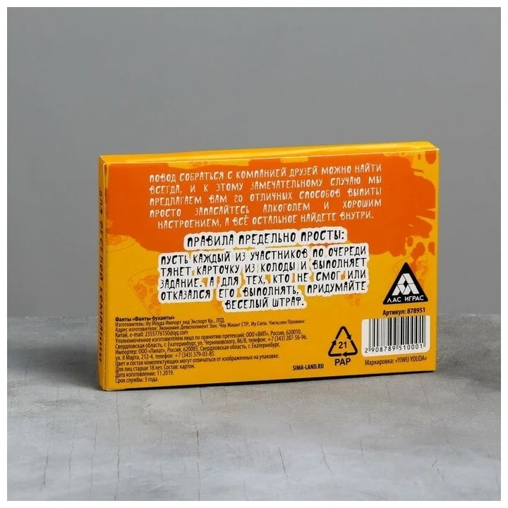 Купить игра для компании "фанты буханты" 20 карт от 100 руб. с доставкой до пункта выдачи в Теберде. Интернет магазин ДекаМаркет. Оплата при получении.
